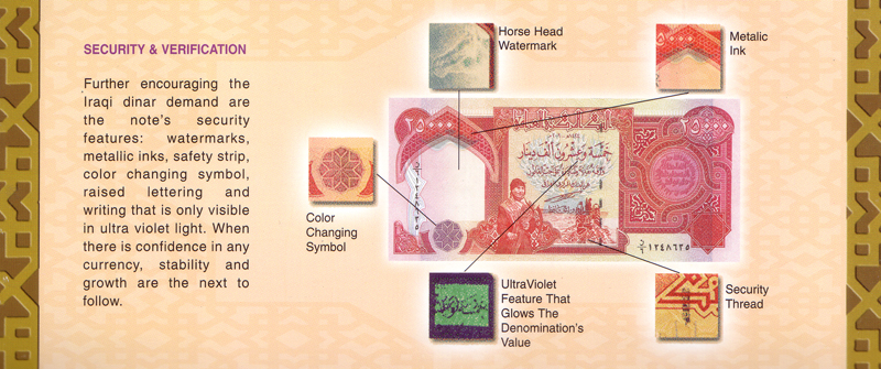 J.P. Morgan Chase Bank went in and headed up a 13 bank consortium to establish the new "Trade Bank of Iraq" but really it was the newCentral Bank of Iraq (CBI). They immediately got rid of the old Saddam Dinars and created brand new currency using De La Rue. The new (completely worthless) currency was printed with the MOST high-tech anti-counterfeit measures of any currency on the planet!